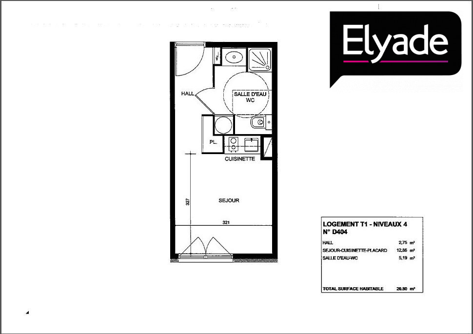 Caluire - 157 Grande Rue de Saint Clair, dans un immeuble de 2011 face au parc de la Tête d'Or. Studio T1 de 20,90 m², au 4ème étage avec ascenseur.