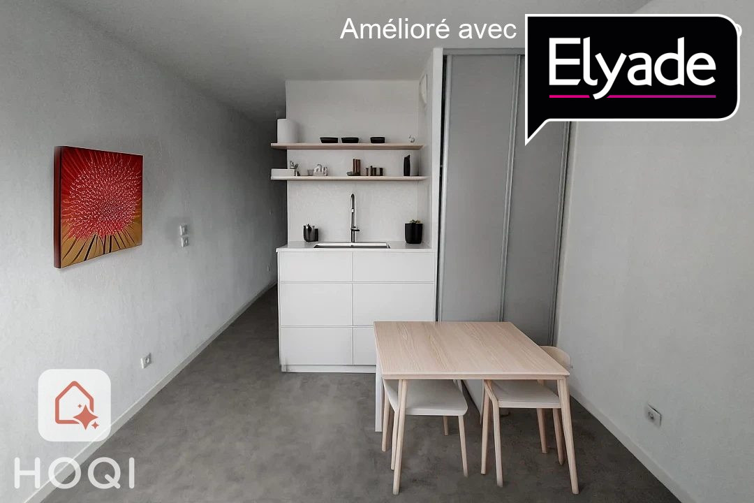 Il comprend une entrée, une pièce principale avec kitchenette équipée (plaque, hotte, réfrigérateur, meubles), placard, salle d'eau avec WC. Chauffage individuel électrique, cumulus pour l'eau chaude. Buanderie au 1er étage. Gardien, rack à vélos, parc. À 2 minutes à pied des bus vers Part Dieu, La Doua, Presqu'île, Croix Rousse.