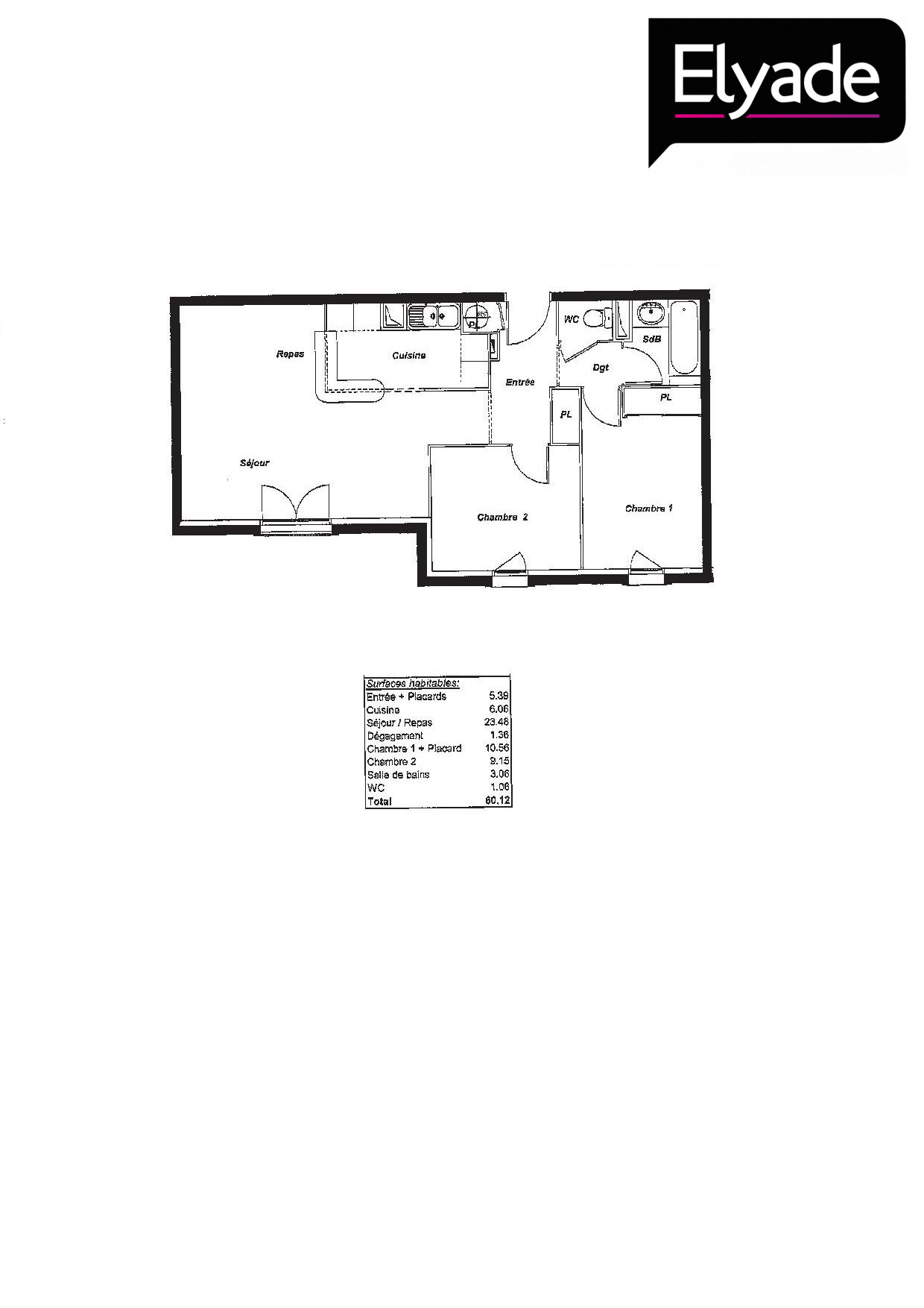 Appartement 3 pièces 60.12m²