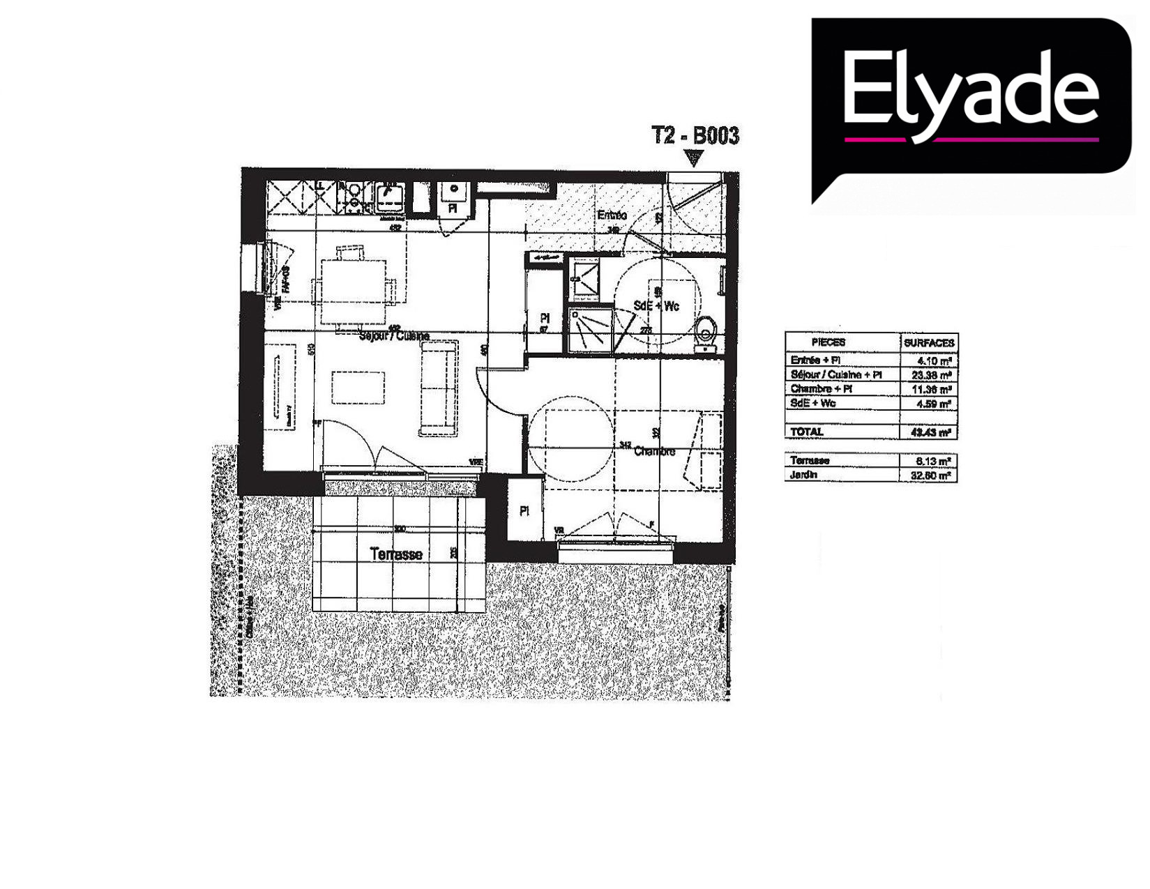 Appartement 2 pièces 43.25m²