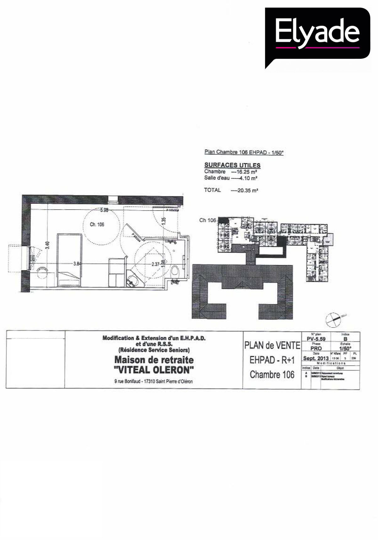 Une chamre d'Ehpad de 20m² comprenant une salle d'eau et un sanitaire. Située dans une résidence au coeur de Saint-Pierre d’Oléron. Construite en 1990, elle a fait l’objet d’une réhabilitation complète et d’une extension en 2016.