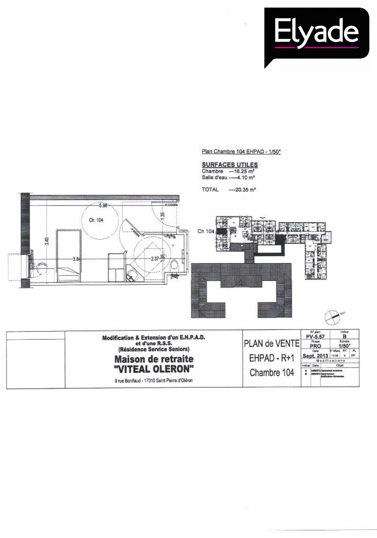 Une chamre d'Ehpad de 20m² comprenant une salle d'eau et un sanitaire. Située dans une résidence au coeur de Saint-Pierre d’Oléron. Construite en 1990, elle a fait l’objet d’une réhabilitation complète et d’une extension en 2016.