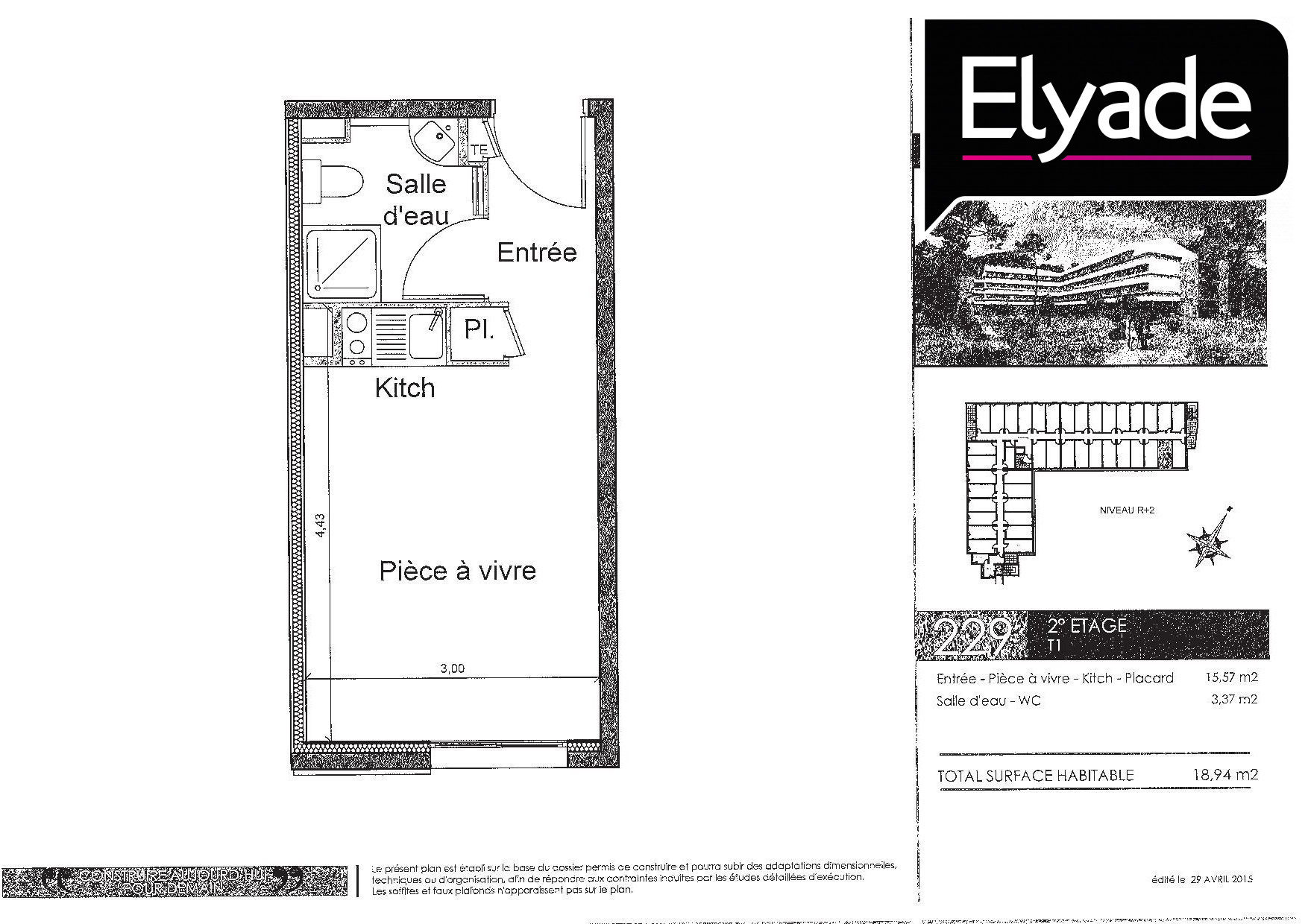 Appartement 1 pièce 18.94m²