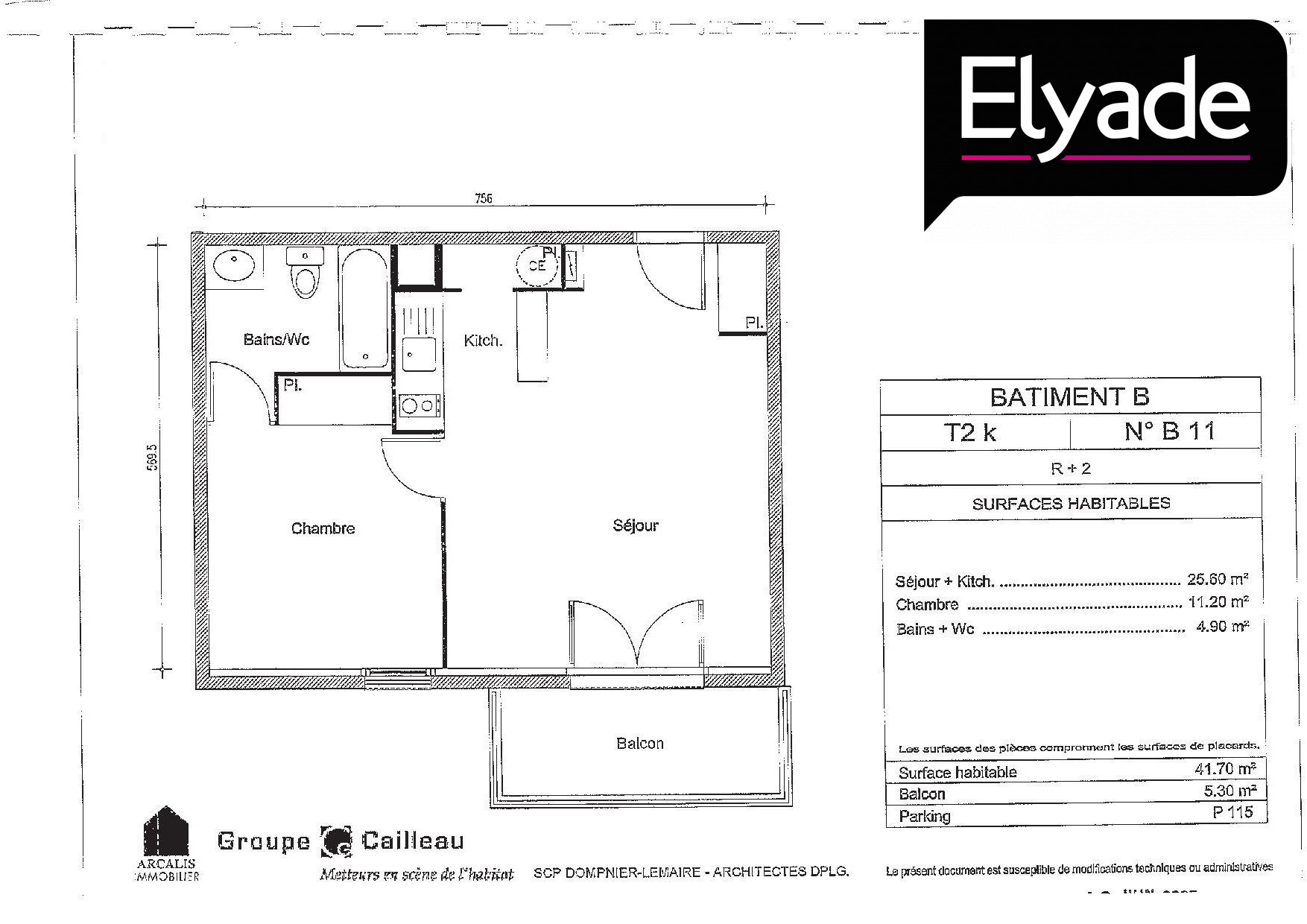 Il se compose comme suit : entrée avec placard, cuisine équipée et ouverte sur séjour (évier, plaque 2 feux, meubles hauts et bas), salle de bains aménagée avec meuble double vasque, WC séparé, d'une chambres avec placards, balcon, 1 place de parking sous-sol et ascenseur - balcon.