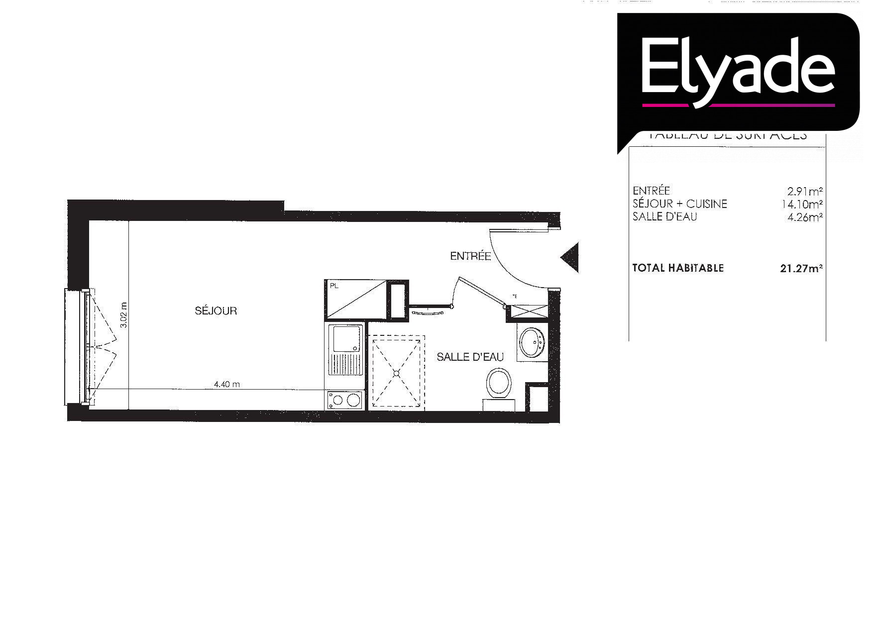 Situé au deuxième étage. il offre une surface habitable de 21,27 m² répartie sur une pièce de vie lumineuse exposée Ouest avec cuisine équipée et d'une salle d'eau.
