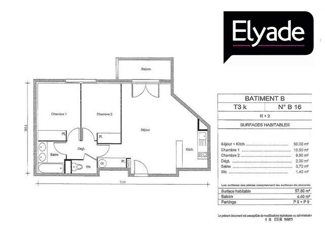 Appartement 3 pièces 58.31m²