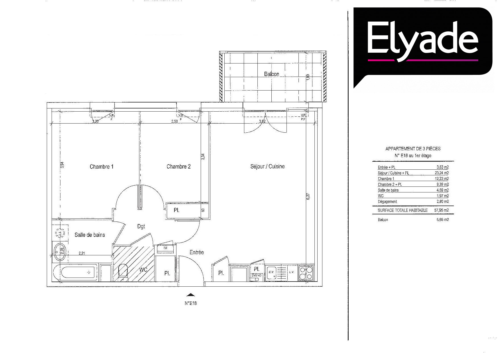 Appartement 3 pièces 59.08m²