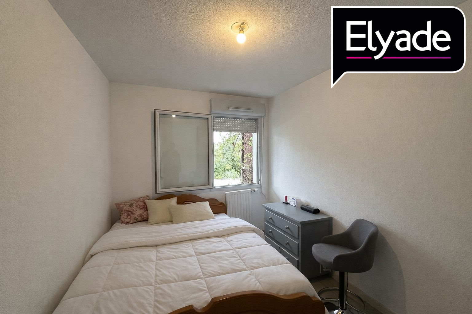 Lumineux, composé d’une entrée avec placard, d’une pièce de vie de 27.40 m², de deux chambres de 12.42 m² et 9.78 m² avec placard, salle de bains de 4.8 m². Toilettes séparées. Environnement paysager et verdoyant, résidence entretenue et sécurisée. Une place de parking aérienne privative. Piscine sécurisée au sein de la copropriété.