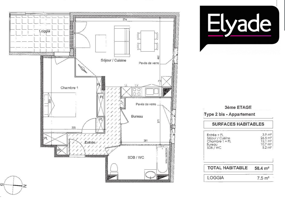 En exclusivité, découvrez ce magnifique appartement T2 Bis de 58.4 m², situé au 3ème et dernier étage d'un immeuble récent construit en 2016.