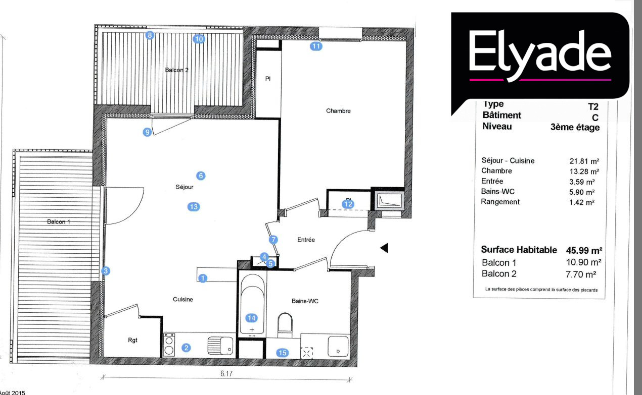 Appartement 2 pièces 45.99m²