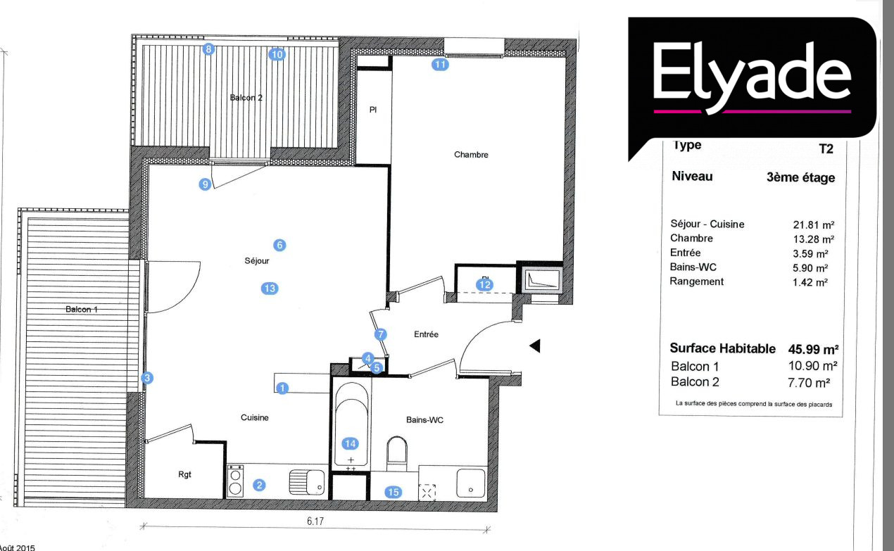 En exclusivité, découvrez ce magnifique appartement T2 de 46 m² bénéficiant de deux balcons pour 19 m², niché au 3ème étage d'une résidence récente construite en 2018.