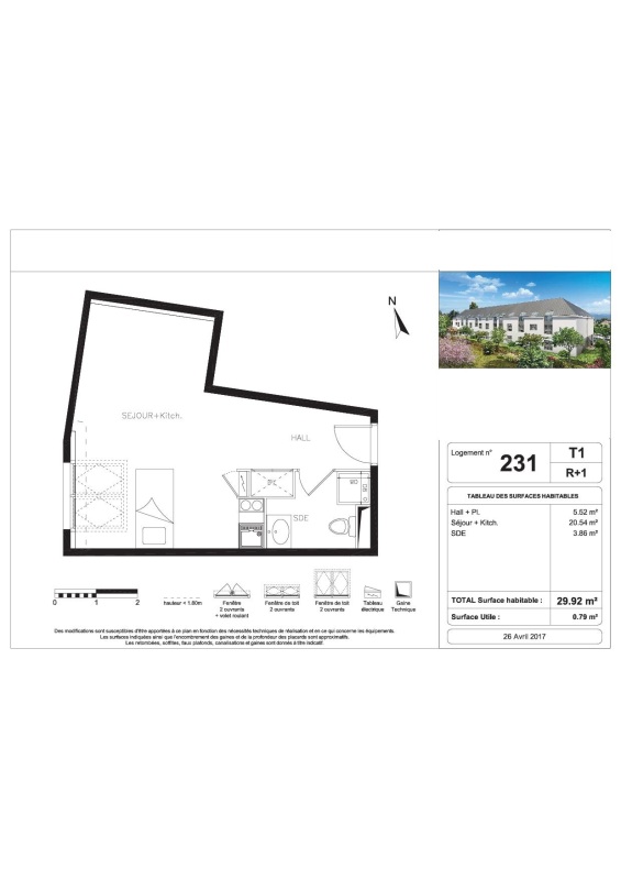 Appartement 1 pièce 29.92m²