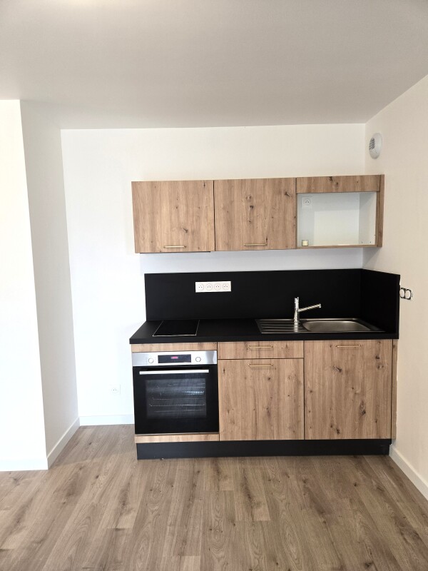 Il est composé d'une entrée, d'un séjour avec cuisine équipée (évier inox, plaque 4 feux, hotte, meubles hauts et bas, four multifonctions), d'une chambre avec placard, d'une salle d'eau aménagée avec WC, d'un balcon de 8.07m². Il bénéficie d'un parking en sous-sol.