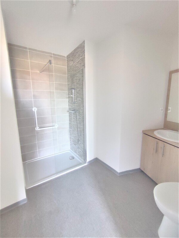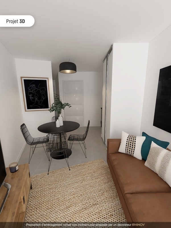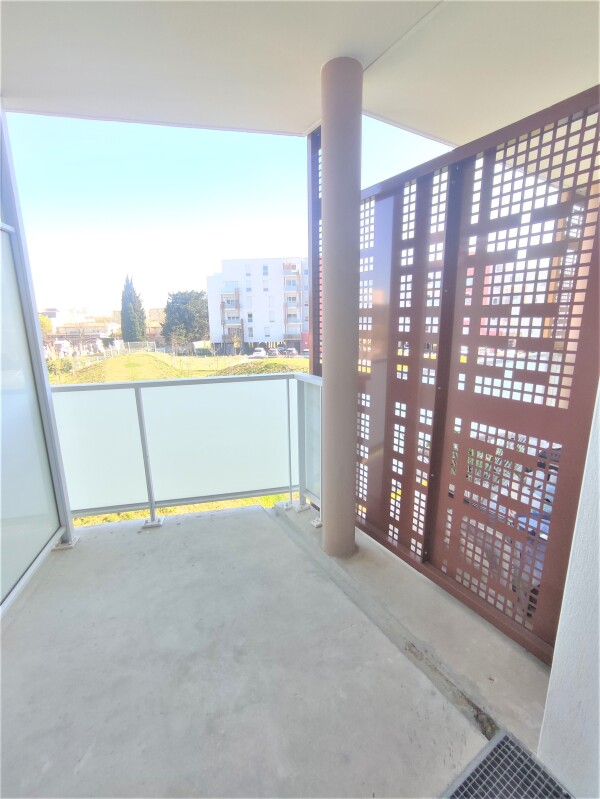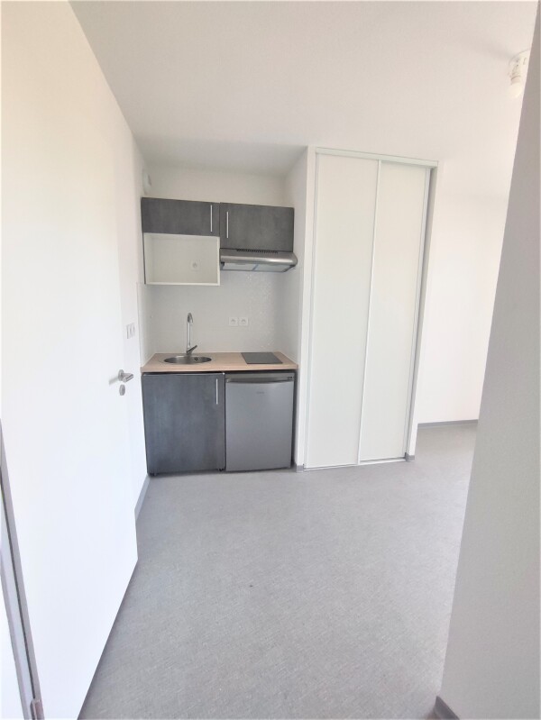 Il est composé d'une entrée, d'une pièce de vie avec cuisine équipée (évier inox, plaque 2 feux, hotte, meubles hauts et bas,frigo table top), d'une salle d'eau aménagée avec WC, d'un balcon de 4.15m². Il bénéficie d'une place de parking aérien.