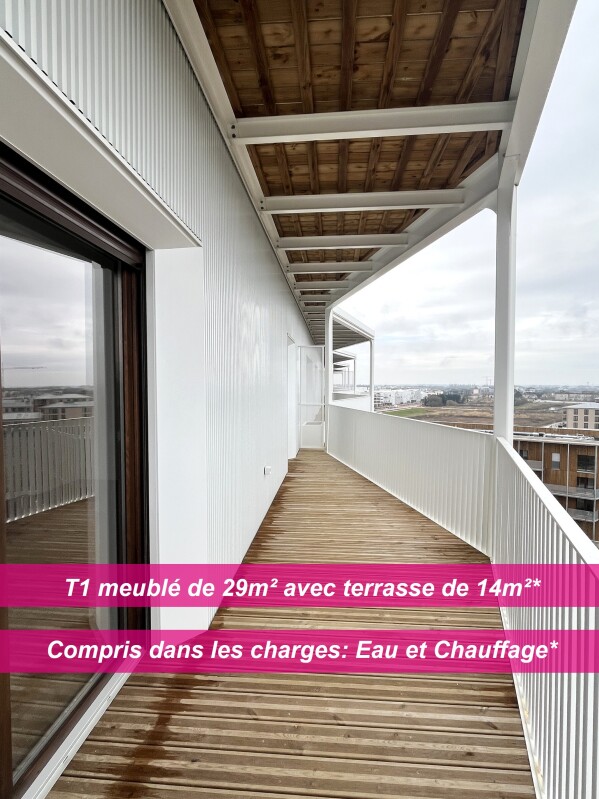 À louer : Grand Studio meublé avec grande terrasse de 14.90 m² sans vis-à-vis .