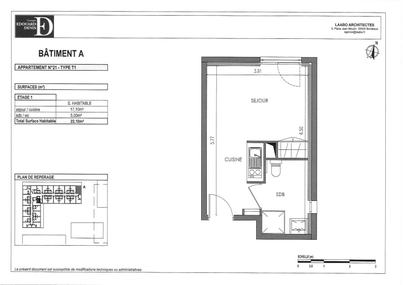 Appartement 1 pièce 22.1m²