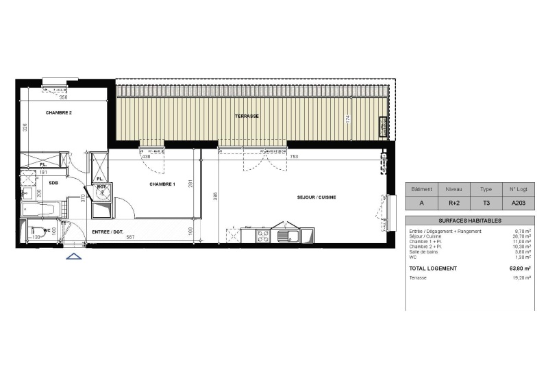Cette résidence neuve vous propose un agréable T3 de 63.80m² avec sa magnifique terrasse de 19.20m² au 2ème et dernier étage !