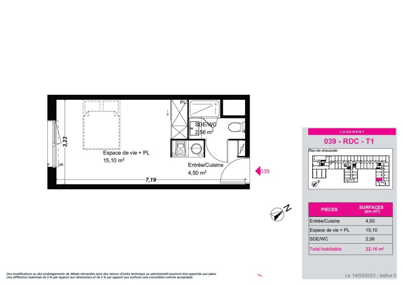 Appartement 1 pièce 22.16m²