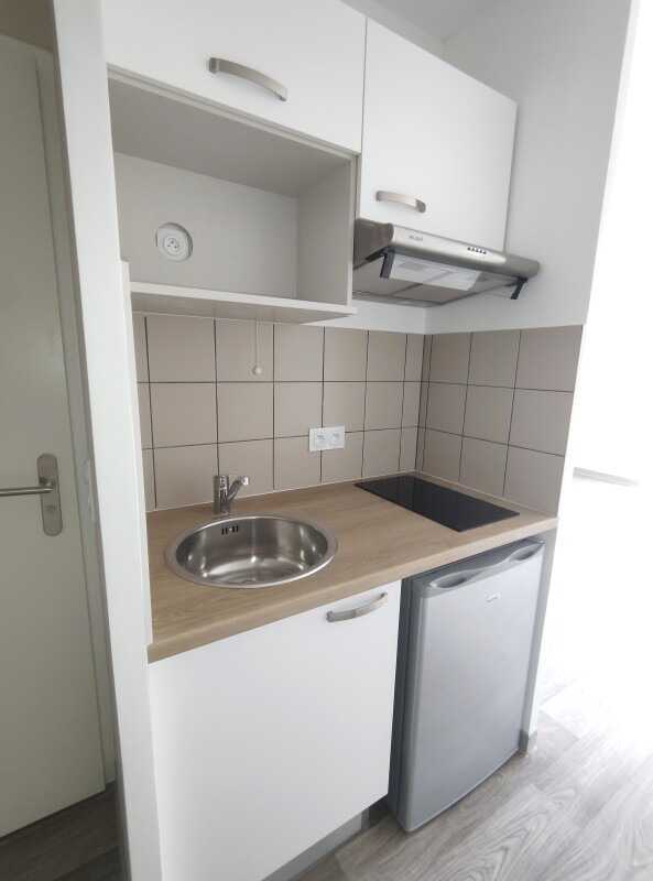 Il est composé d'une entrée, d'une pièce à vivre avec cuisine équipée (évier inox, plaque 2 feux, hotte, meubles hauts et bas, réfrigérateur table top), d'une salle d'eau aménagée avec WC .