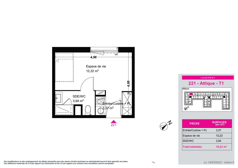 Appartement 1 pièce 19.23m²