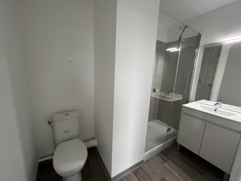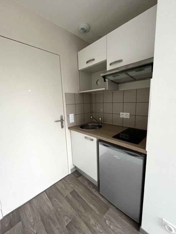 A la location ce studio composé d'une entrée, d'une pièce à vivre avec cuisine équipée (évier inox, plaque 2 feux, hotte, meubles hauts et bas, réfrigérateur table top), d'une salle d'eau aménagée avec WC. Il bénéficie d'un parking en sous-sol.