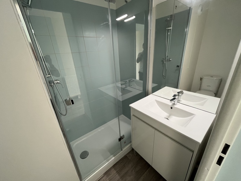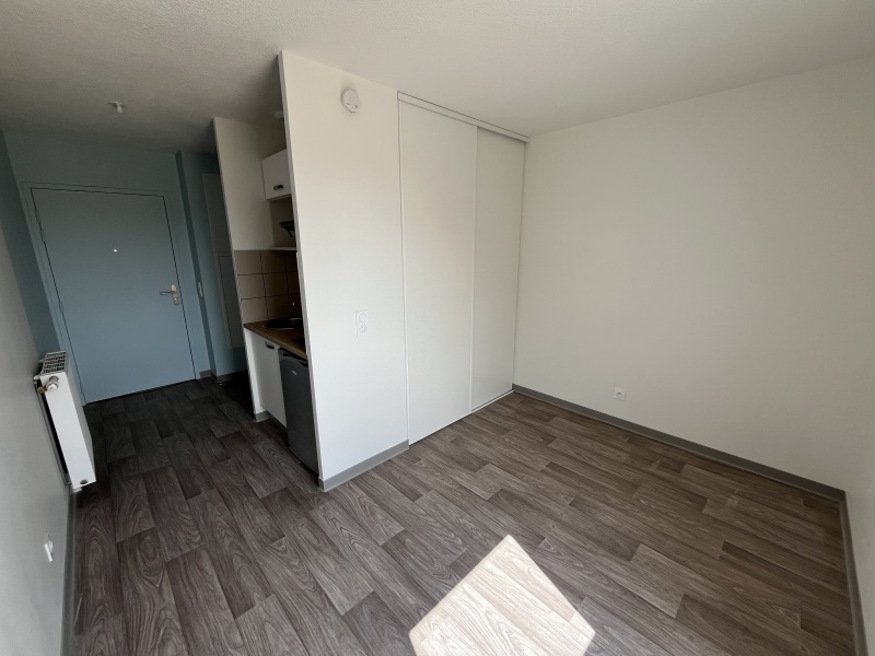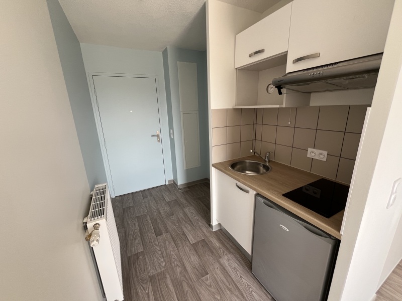 A la location ce studio composé d'une entrée, d'une pièce à vivre avec cuisine équipée (évier inox, plaque 2 feux, hotte, meubles hauts et bas, réfrigérateur table top), d'une salle d'eau aménagée avec WC. Il bénéficie d'un parking en sous-sol.