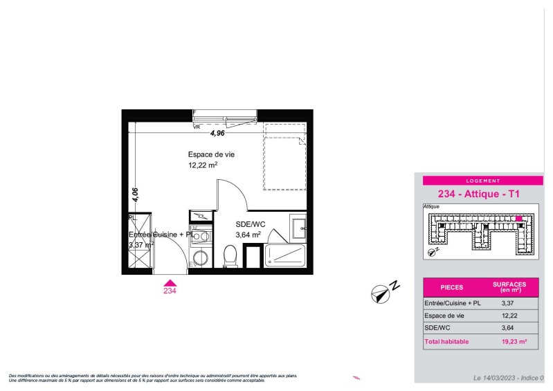 Appartement 1 pièce 19.23m²