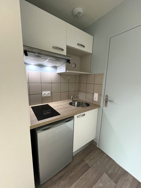 A la location ce studio est composé d'une entrée, d'une pièce à vivre avec cuisine équipée (évier inox, plaque 2 feux, hotte, meubles hauts et bas, réfrigérateur table top), d'une salle d'eau aménagée avec WC. Il bénéficie d'un parking aérien.