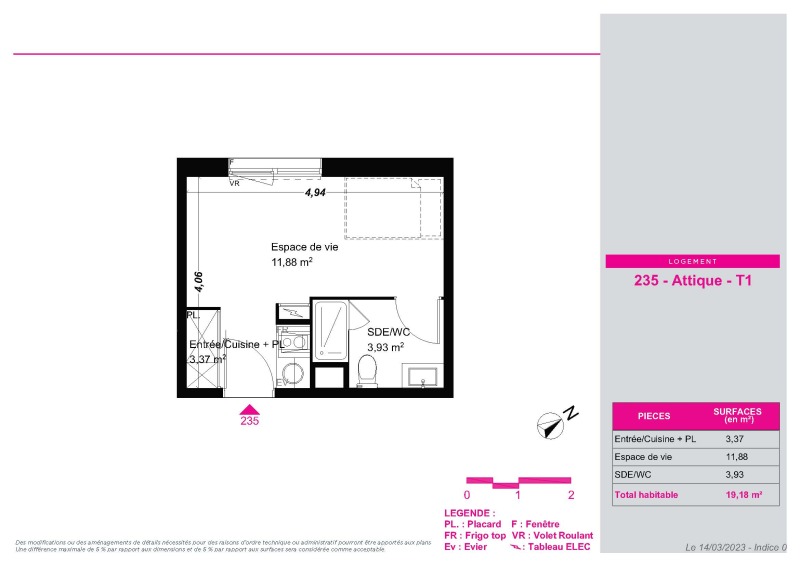 Appartement 1 pièce 19.18m²