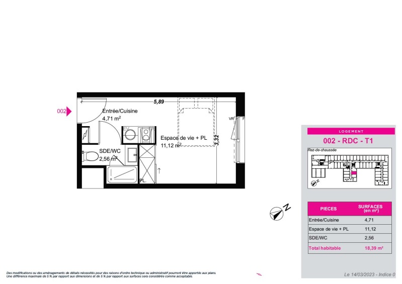Appartement 1 pièce 18.39m²
