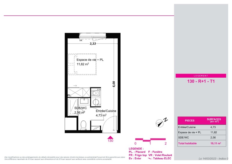 Il est composé d'une entrée, d'une pièce à vivre avec cuisine équipée (évier inox, plaque 2 feux, hotte, meubles hauts et bas, réfrigérateur table top), d'une salle d'eau aménagée avec WC . Il bénéficie d'un parking sous-sol.