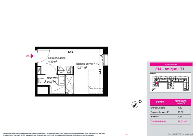 Appartement 1 pièce 17.03m²