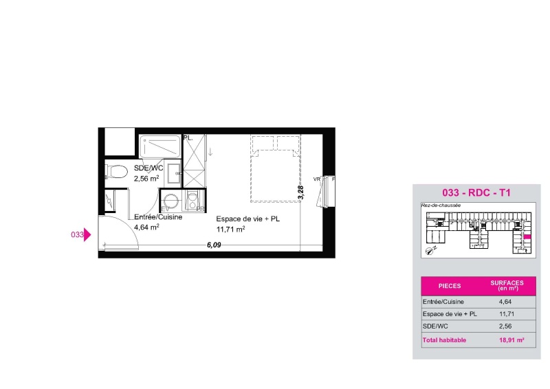Appartement 1 pièce 18.91m²