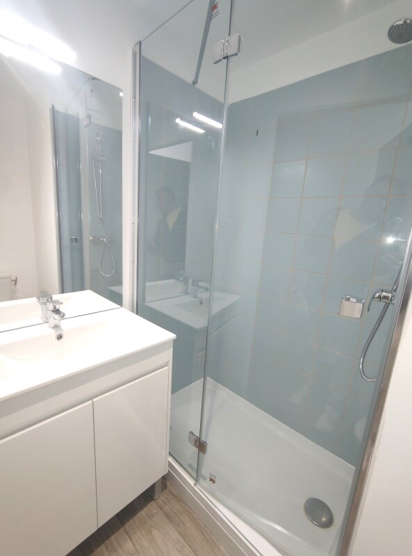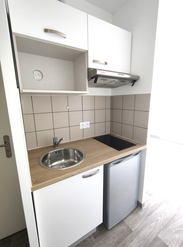 Il est composé d'une entrée, d'une pièce à vivre avec cuisine équipée (évier inox, plaque 2 feux, hotte, meubles hauts et bas, réfrigérateur top), d'une salle d'eau aménagée avec WC .