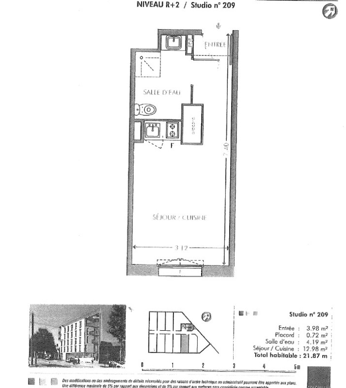 Appartement 1 pièce 21.87m²