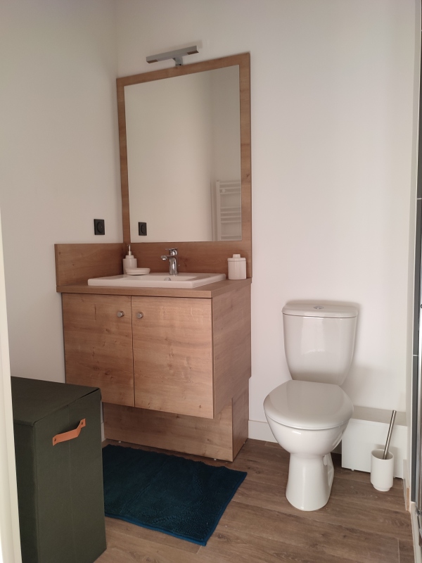 L'appartement se compose d'une entrée, d'un séjour élégant et optimisé avec cuisine équipée (évier, plaque 2 feux, hotte, réfrigérateur table top, micro-ondes, set vaisselle et cuisson), d'un canapé convertible 3 places, d'une table basse, ainsi que d'un meuble multifonction design faisant office de bar et d'espace bureau.Une salle d'eau aménagée avec WC, aux finitions actuelles, complète ce bien.
