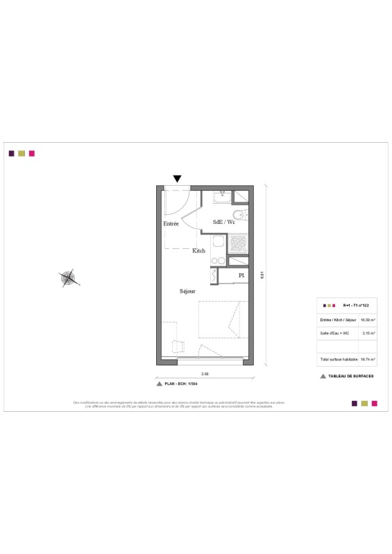 Appartement 1 pièce 19.74m²
