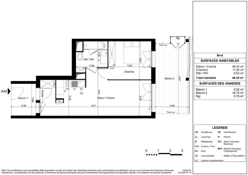 Appartement 2 pièces 46.59m²