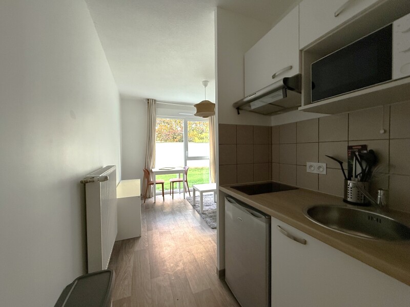 Ce STUDIO MEUBLE est composé d'une entrée, d'une pièce à vivre avec cuisine équipée (évier inox, plaque 2 feux, hotte, meubles hauts et bas, réfrigérateur table top), d'une salle d'eau aménagée avec WC . Il bénéficie également d'une place de stationnement en sous-sol.