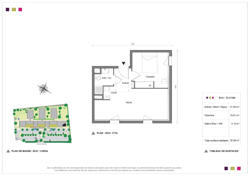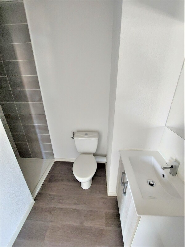 Il est composé d'une entrée, séjour avec cuisine équipée (évier inox, plaque 2 feux, hotte, meubles hauts et bas, frigo top), une chambre avec placard, salle d'eau aménagée avec WC,