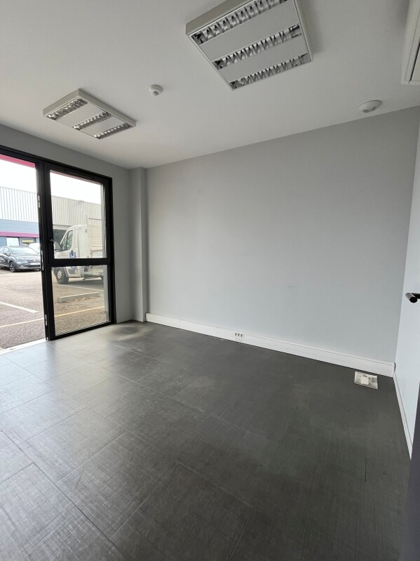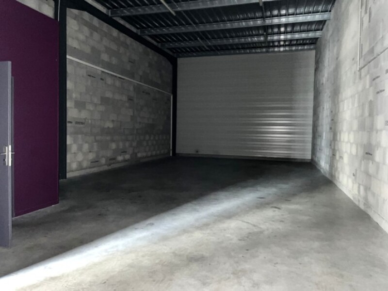 Le local d'une superficie de 120m² dispose d'un bureau climatisé, d'un espace de stockage avec porte sectionnelle motorisé et d'un espace sanitaire, équipé de prise RG45.