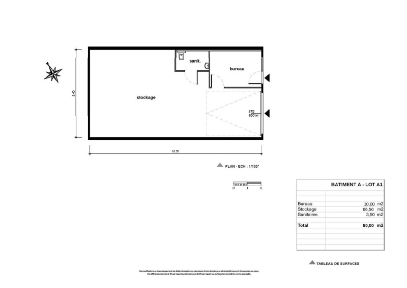Le local d'une superficie de 80m² dispose d'un bureau climatisé, d'un espace de stockage avec porte sectionnelle motorisé et d'un espace sanitaire, équipé de prise RG45.