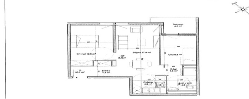 Appartement 3 pièces 53.7m²