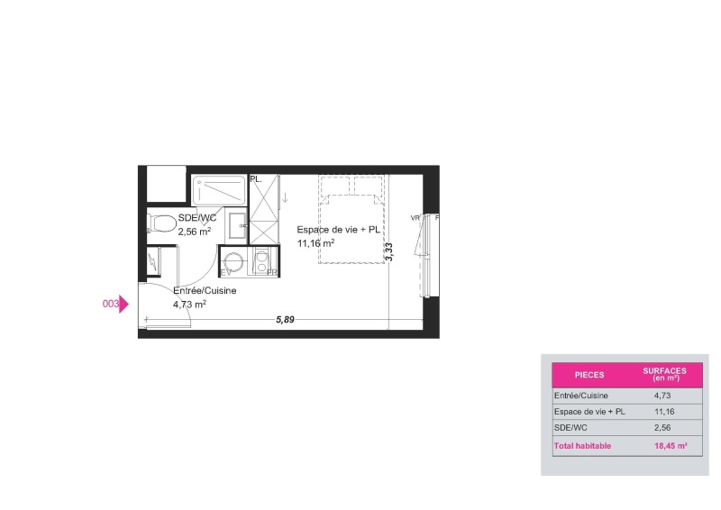 Ce STUDIO MEUBLE est composé d'une entrée, d'une pièce à vivre avec cuisine équipée (évier inox, plaque 2 feux, hotte, meubles hauts et bas, réfrigérateur table top), d'une salle d'eau aménagée avec WC Il bénéficie d'une place de stationnement en sous-sol.