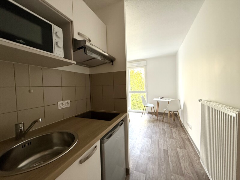 Ce STUDIO MEUBLE est composé d'une entrée, d'une pièce à vivre avec cuisine équipée (évier inox, plaque 2 feux, hotte, meubles hauts et bas, réfrigérateur table top), d'une salle d'eau aménagée avec WC . Il bénéficie d'une place de stationnement en sous-sol.