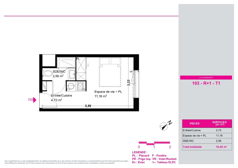 Appartement 1 pièce 18.45m²