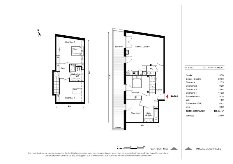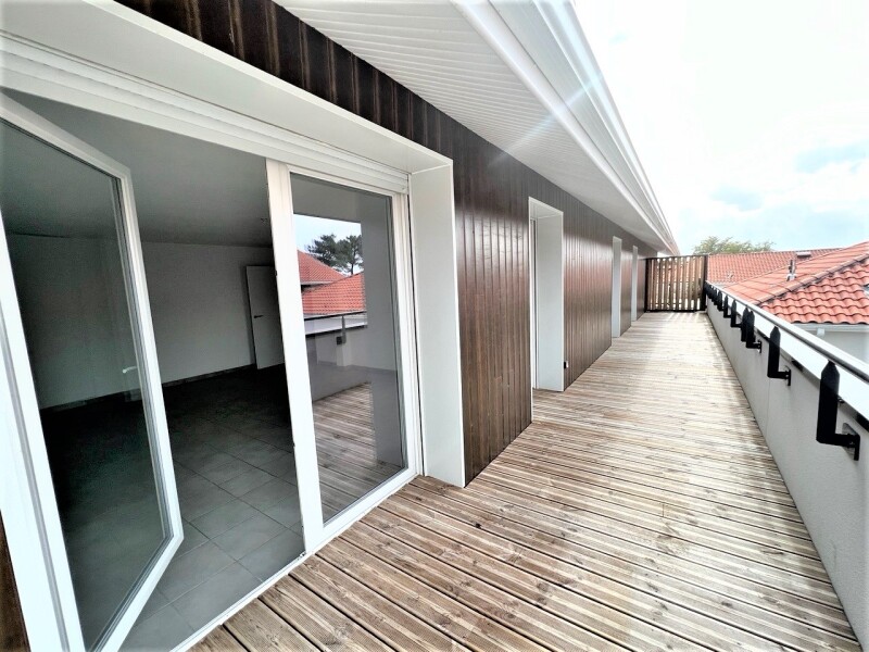 Centre ville de Biscarrosse, à 5 mn du centre commercial de Laouadie et 10 mn des plages,agréable T5 Duplex situé composé d'une entrée, d'un séjour avec cuisine équipée (évier, plaque 4 feux, hotte, meubles hauts et bas), de deux chambres dont une avec placard, d'une salle de bain aménagée, d'un WC séparé et d'une grande terrasse de 25.99 m².