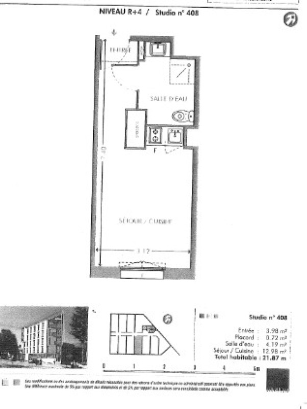 Appartement 1 pièce 21.87m²