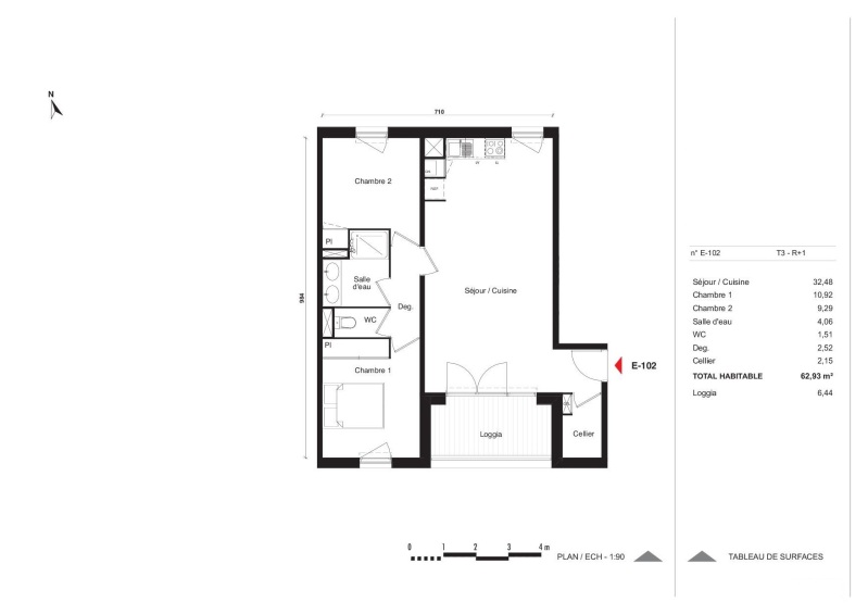 Appartement 3 pièces 62.93m²