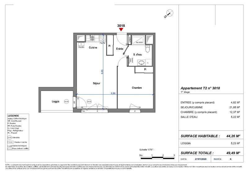 Nous vous proposons un agréable T2 composé d'une entrée, d'un séjour avec coin cuisine, d'une chambre avec placards, d'une salle d'eau aménagée avec WC et une loggia de 5.23 m². Il bénéficie d'un parking couvert.